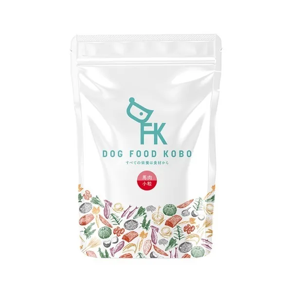 牛肉、鶏肉、馬肉、魚肉、豚レバー、大麦全粒粉、玄米粉、大豆たんぱく粉末、たかきび、脱脂米ぬか、魚粉、ヤシ粉末、さつまいも、ジャガイモ、いりごま、菜種油、乳清タンパク、海藻粉末、卵殻カルシウム、脱脂粉乳、クランベリー、フラクトオリゴ糖、乳酸菌群