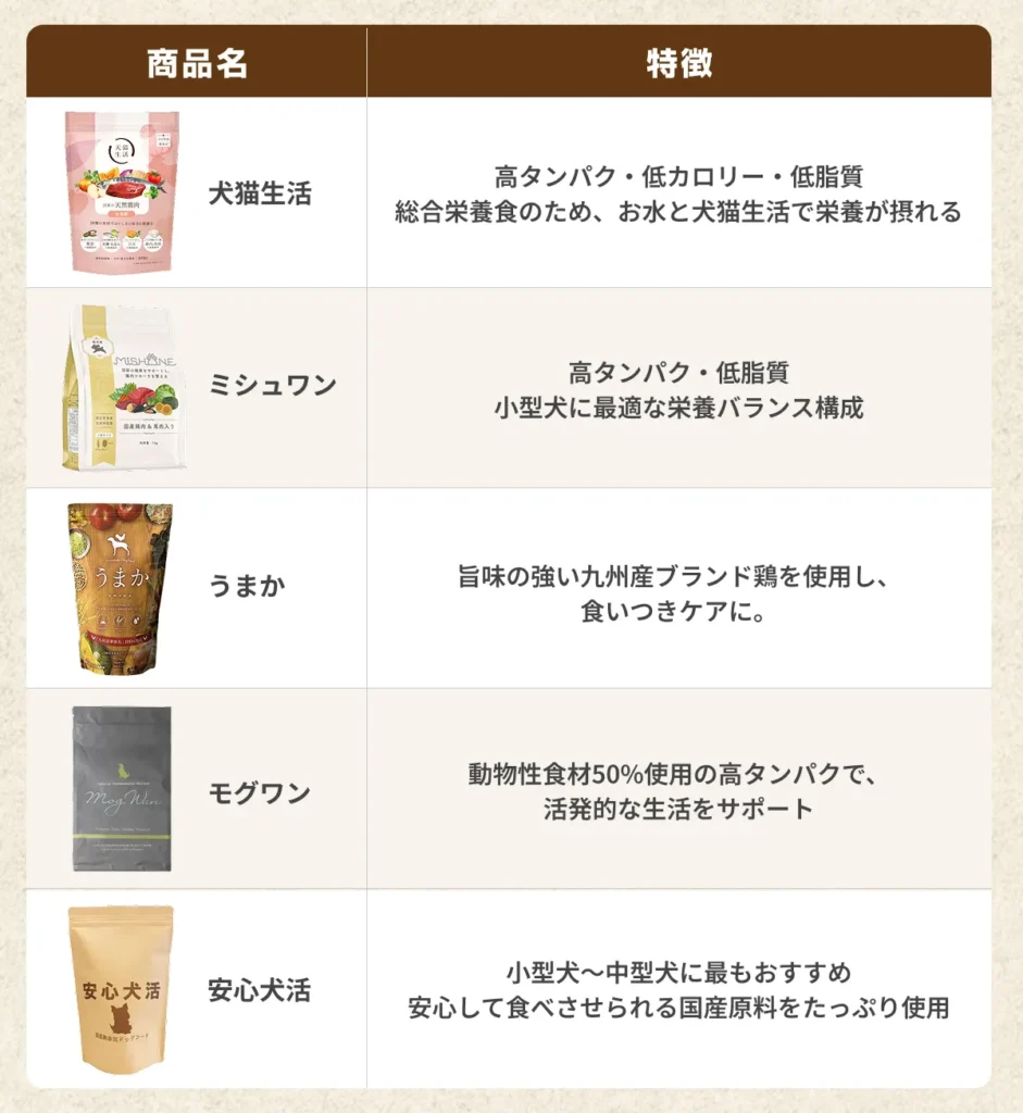 各ドッグフードの特徴を知って、あなたの愛犬にぴったりなドッグフードが見つけましょう!