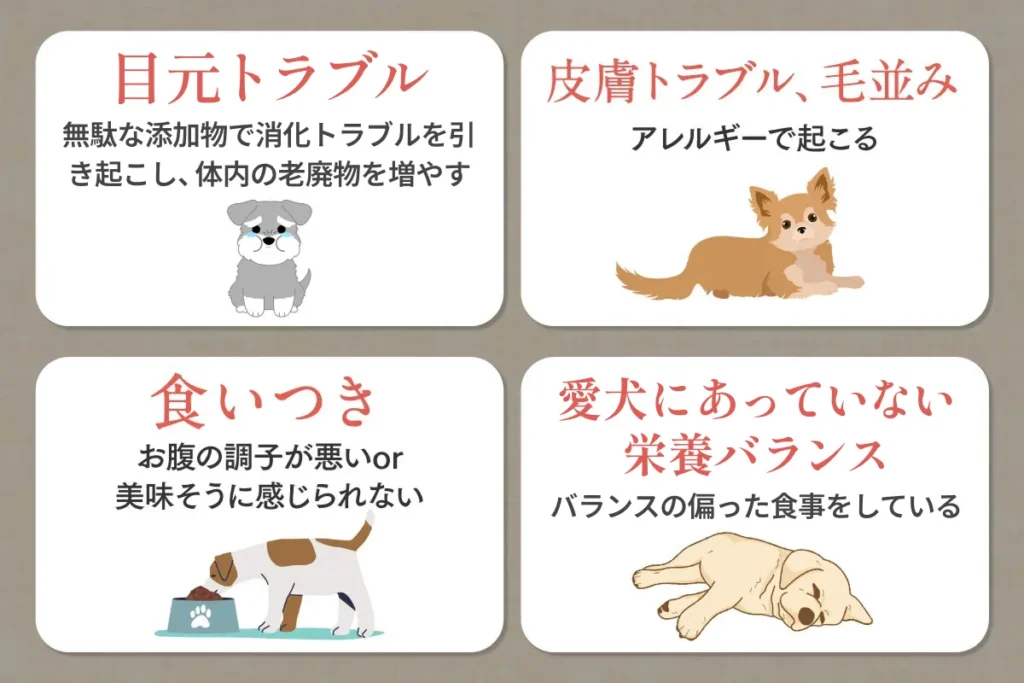 どれか一つでも思い当たれば、フード選びを間違えているかもしれません。