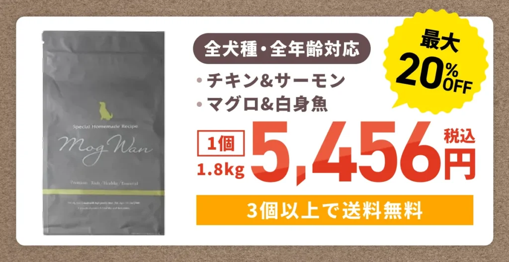 そんな株式会社レティシアンの自信作「モグワン」は、1袋1.8kgで、5,456円(税込)です。